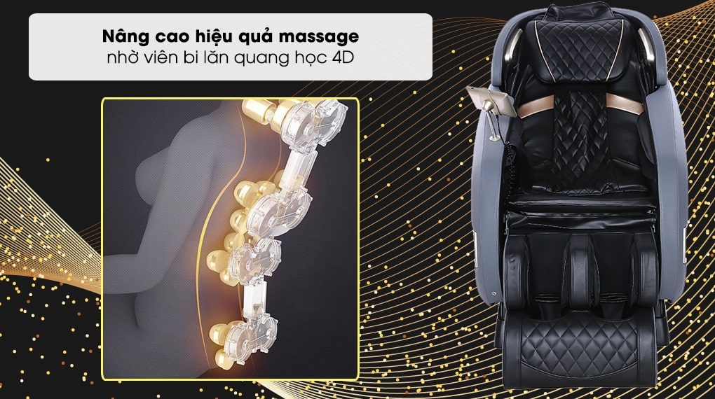 Nhờ các hệ thống con lăn, túi khí đặc biệt tác động vào cơ thể con người giúp người dùng hạn chế và cải thiện trạng thái đau mỏi cơ. Những con lăn kết hợp với chế độ cảm biến thông minh, giúp dò tìm, bấm huyệt chuẩn xác.